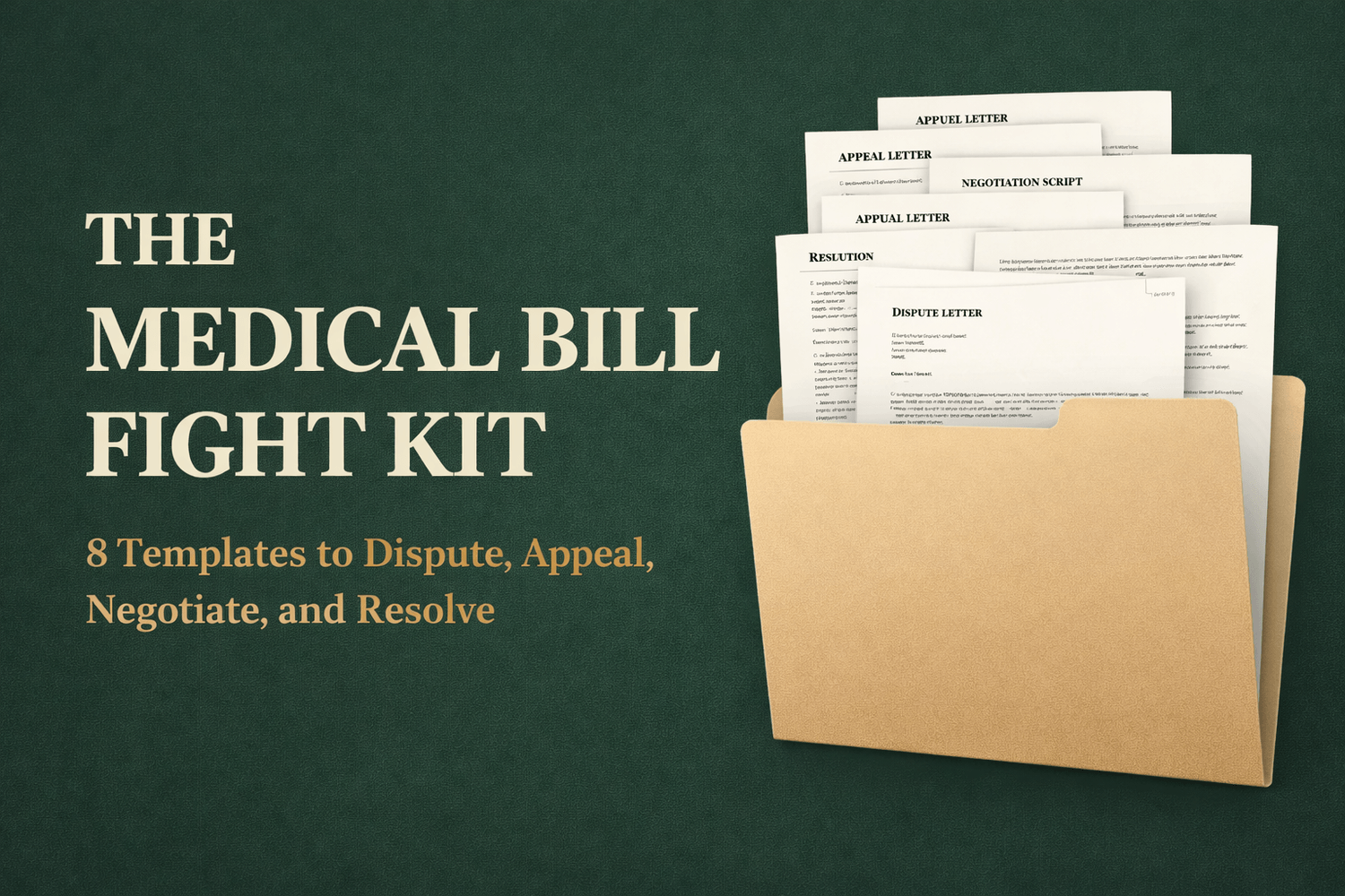 Instant access to The Medical Bill Fight Kit — 8 fill-in-the-blank templates to dispute, appeal, negotiate, and resolve any medical bill.